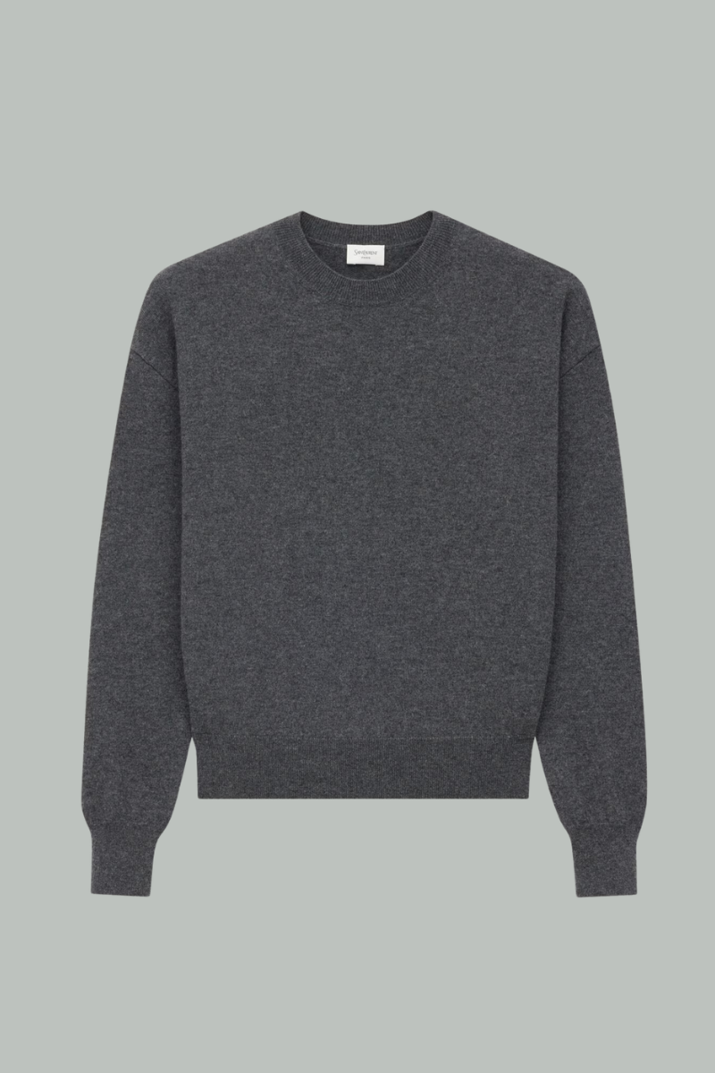 This oversized sweater features a crew neck and ribbed edges, offering a relaxed and comfortable look.