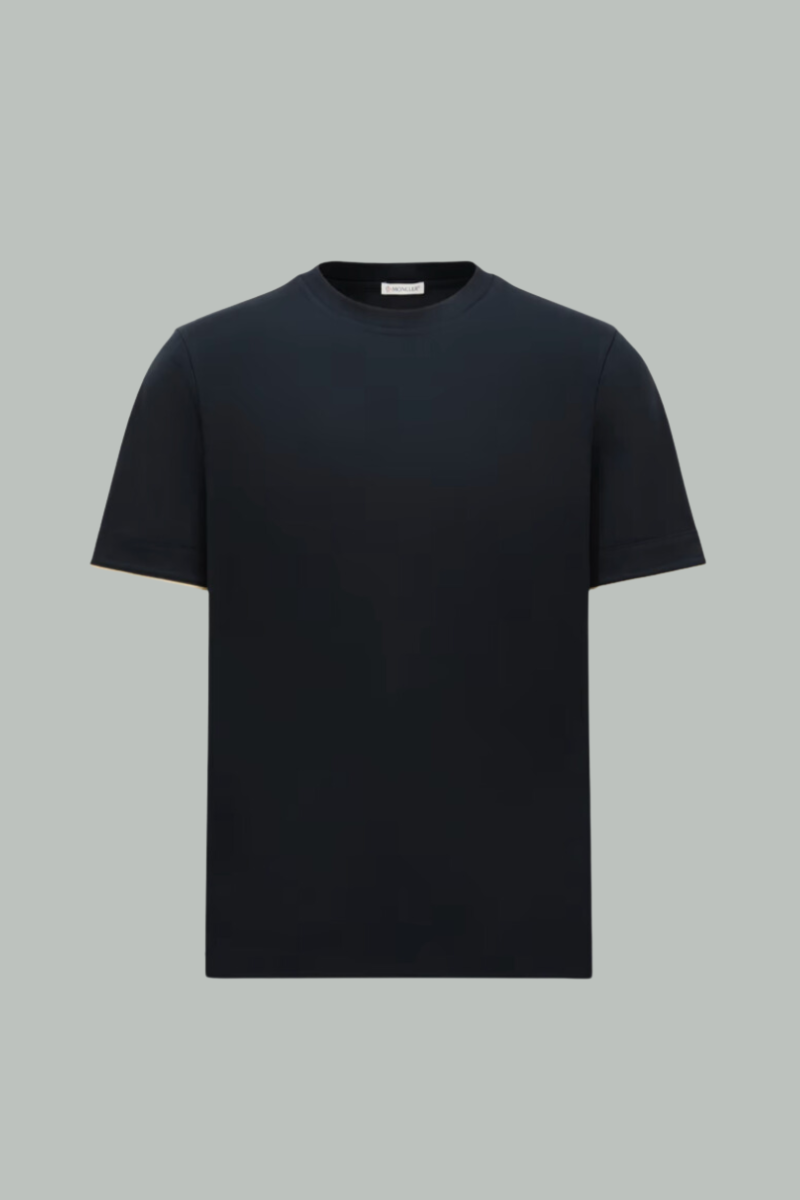 Évoquant un luxe au quotidien, ce t-shirt en jersey de coton mercerisé allie douceur et éclat subtil, avec un col rond classique, des manches courtes soulignées d’une bordure effet daim et un logo brodé ton sur ton.