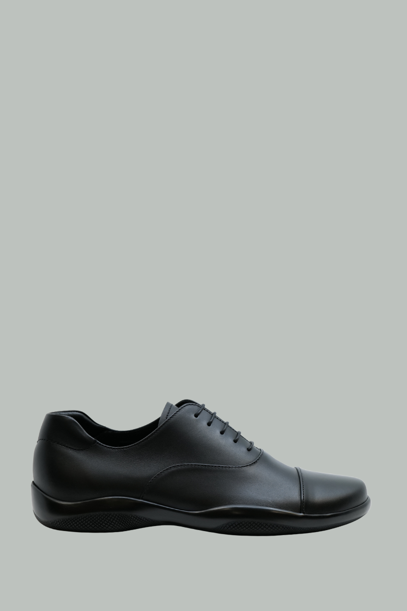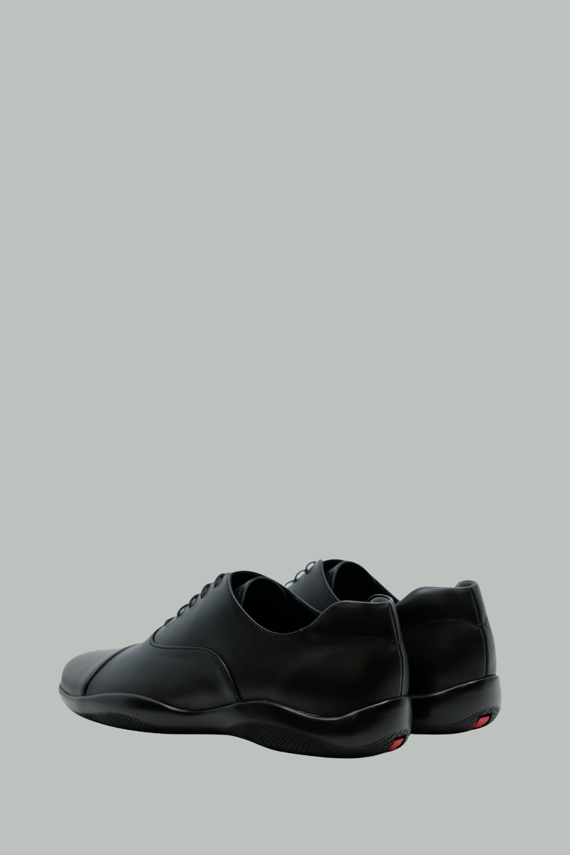 Alliant esthétique minimaliste et esprit sportif, les chaussures à lacets Toblach se distinguent par une silhouette fine et épurée, réalisée en cuir mat. Inspirées d’un modèle issu des archives Prada Linea Rossa des années 1990, elles perpétuent cet héritage innovant à travers un design qui conjugue savoir-faire artisanal, fonctionnalité et confort.